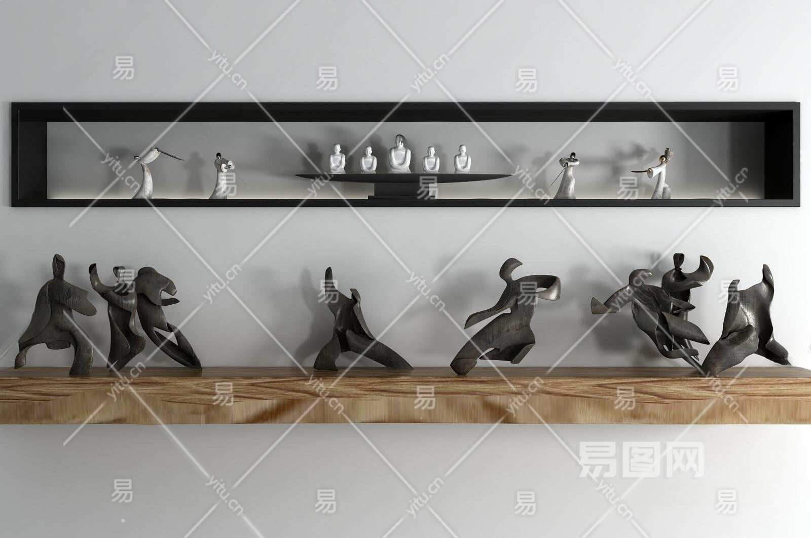 现代铜人雕塑3D模型下载