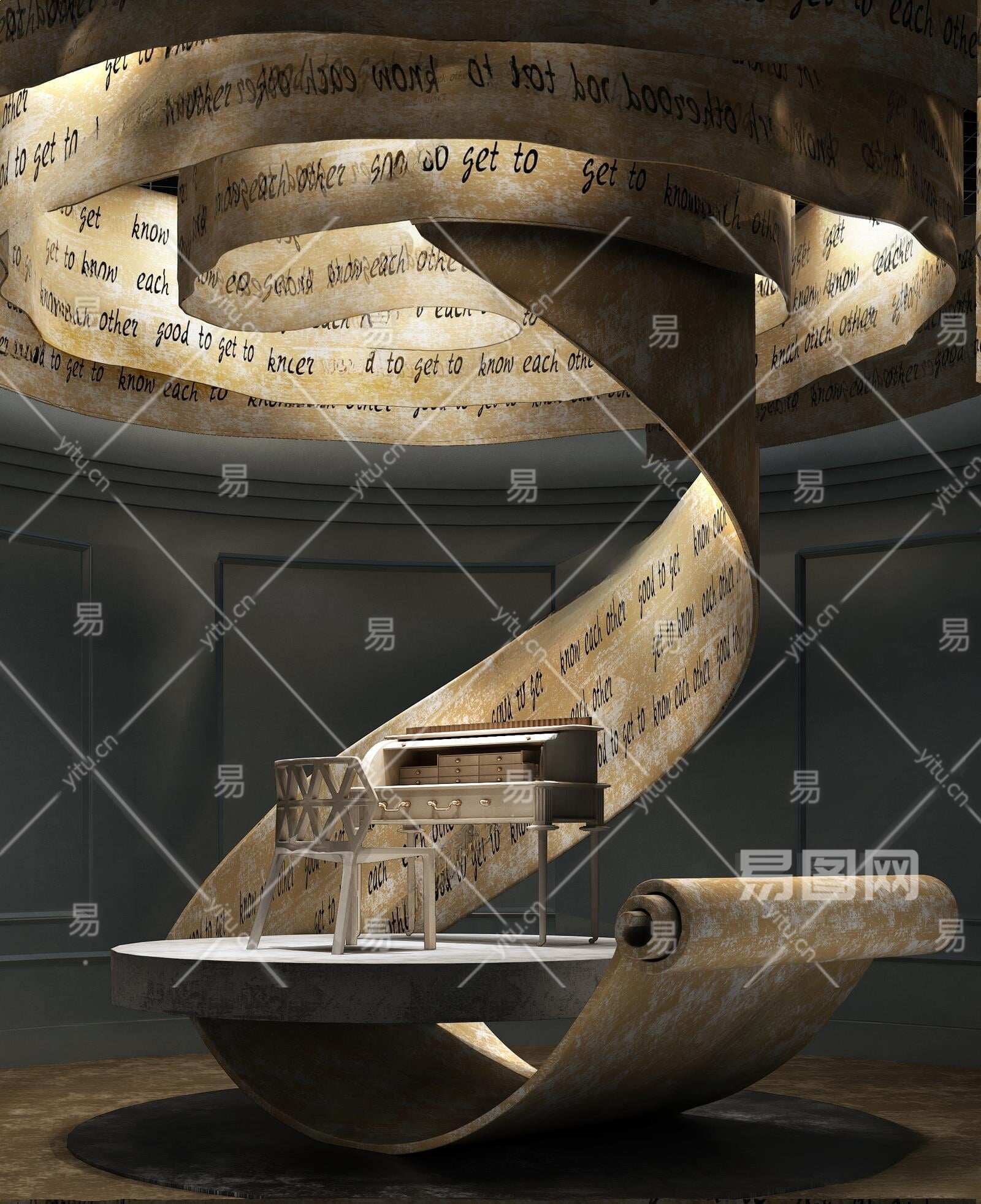 现代异形钢琴雕塑3D模型下载