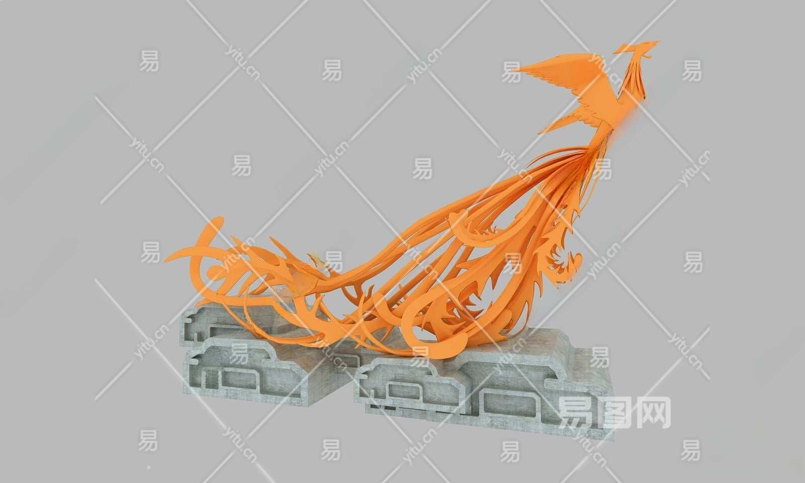 新中式凤凰雕塑3D模型下载