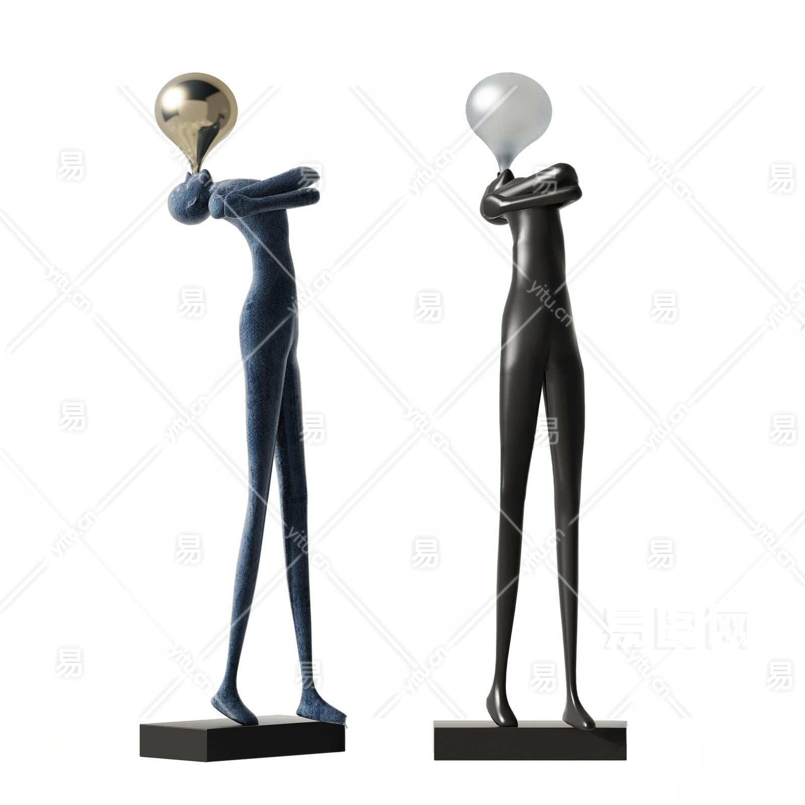 现代人物雕塑装置3D模型下载