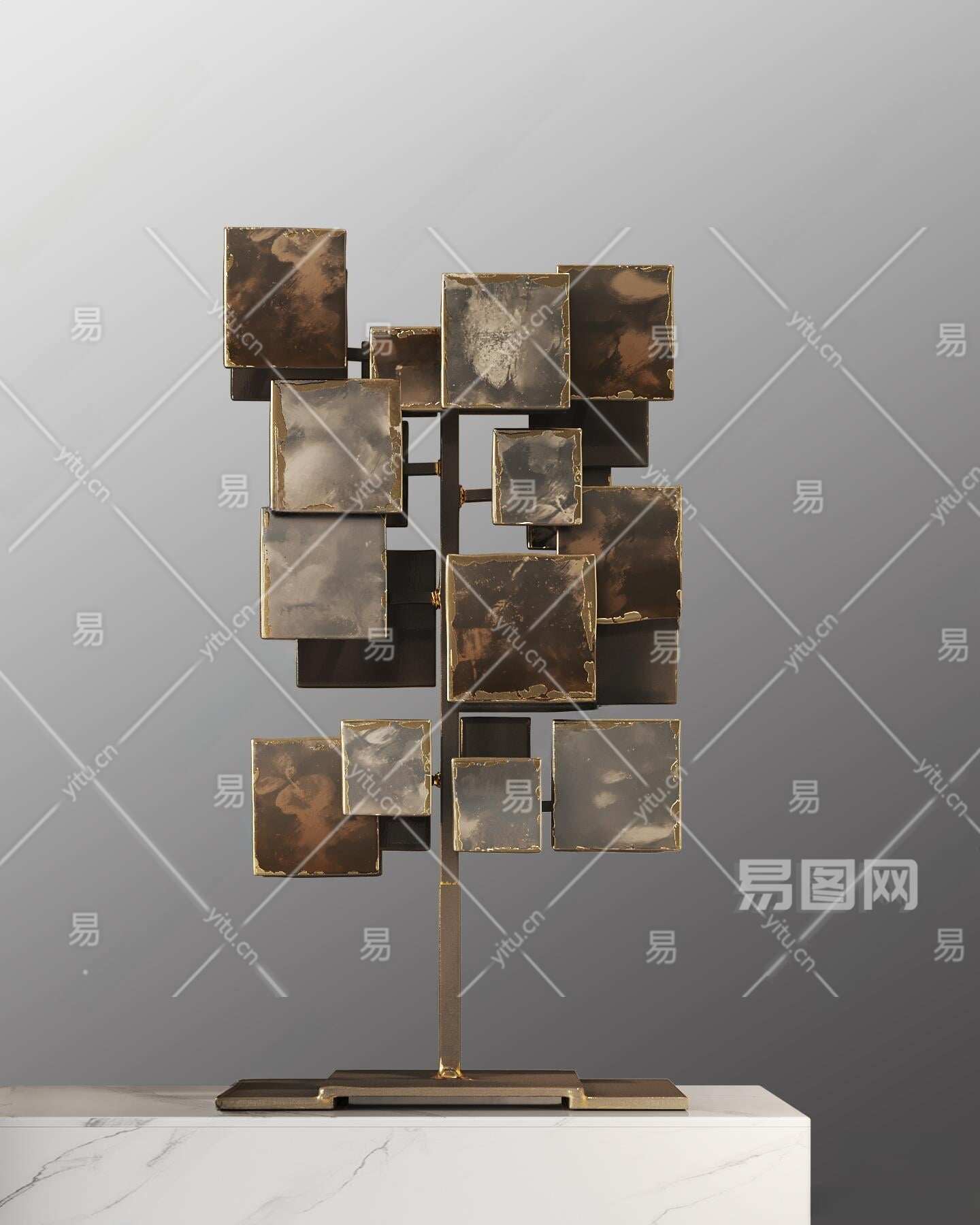现代摆件抽象金属雕塑3D模型下载