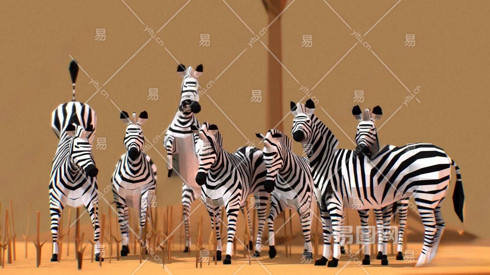 现代斑马雕塑3D模型下载