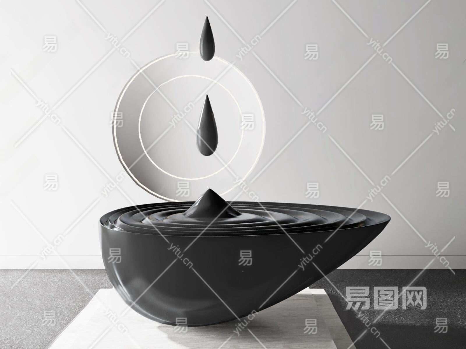 现代艺术水滴雕塑装置3D模型下载