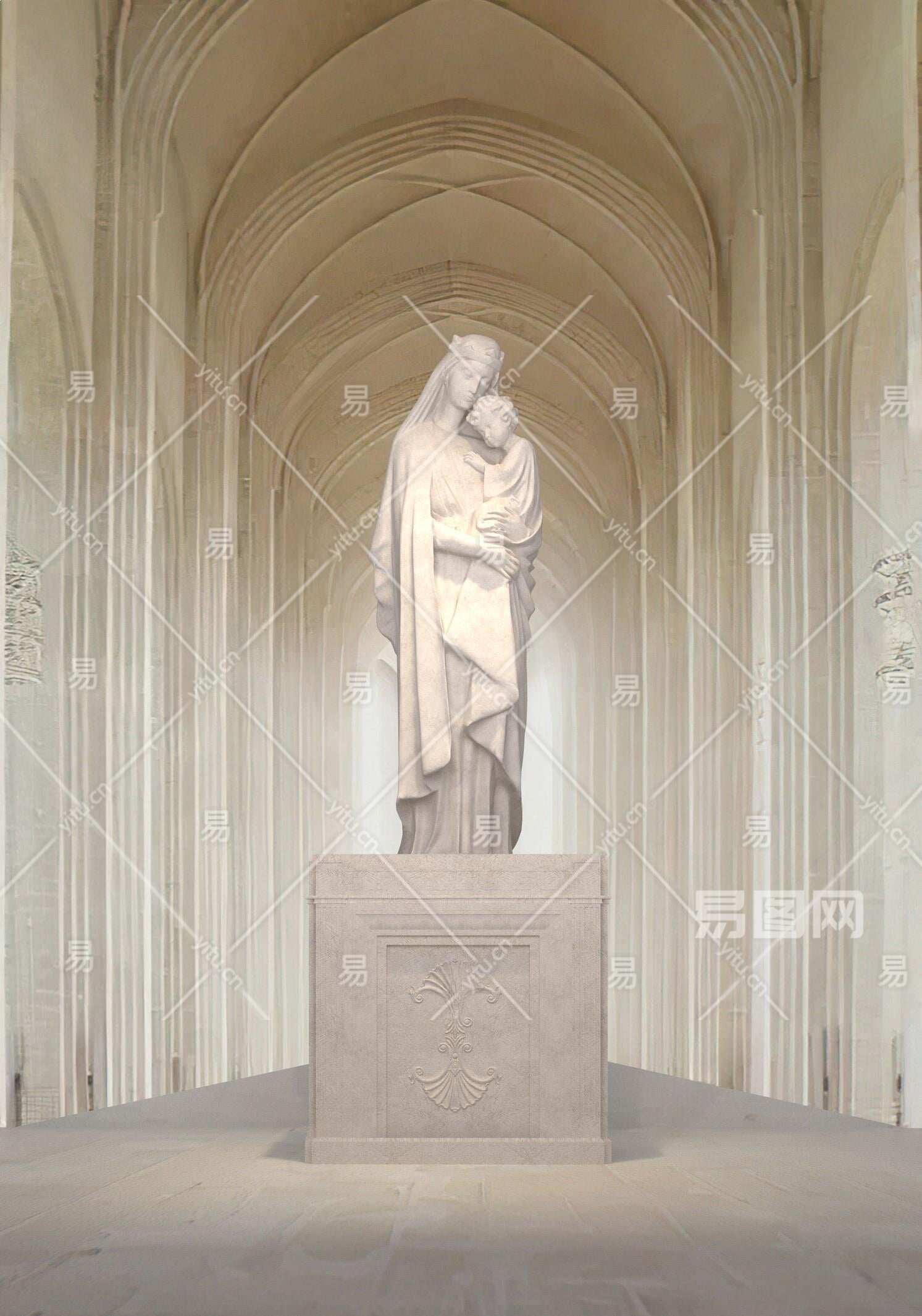 欧式古典教堂雕塑3D模型下载