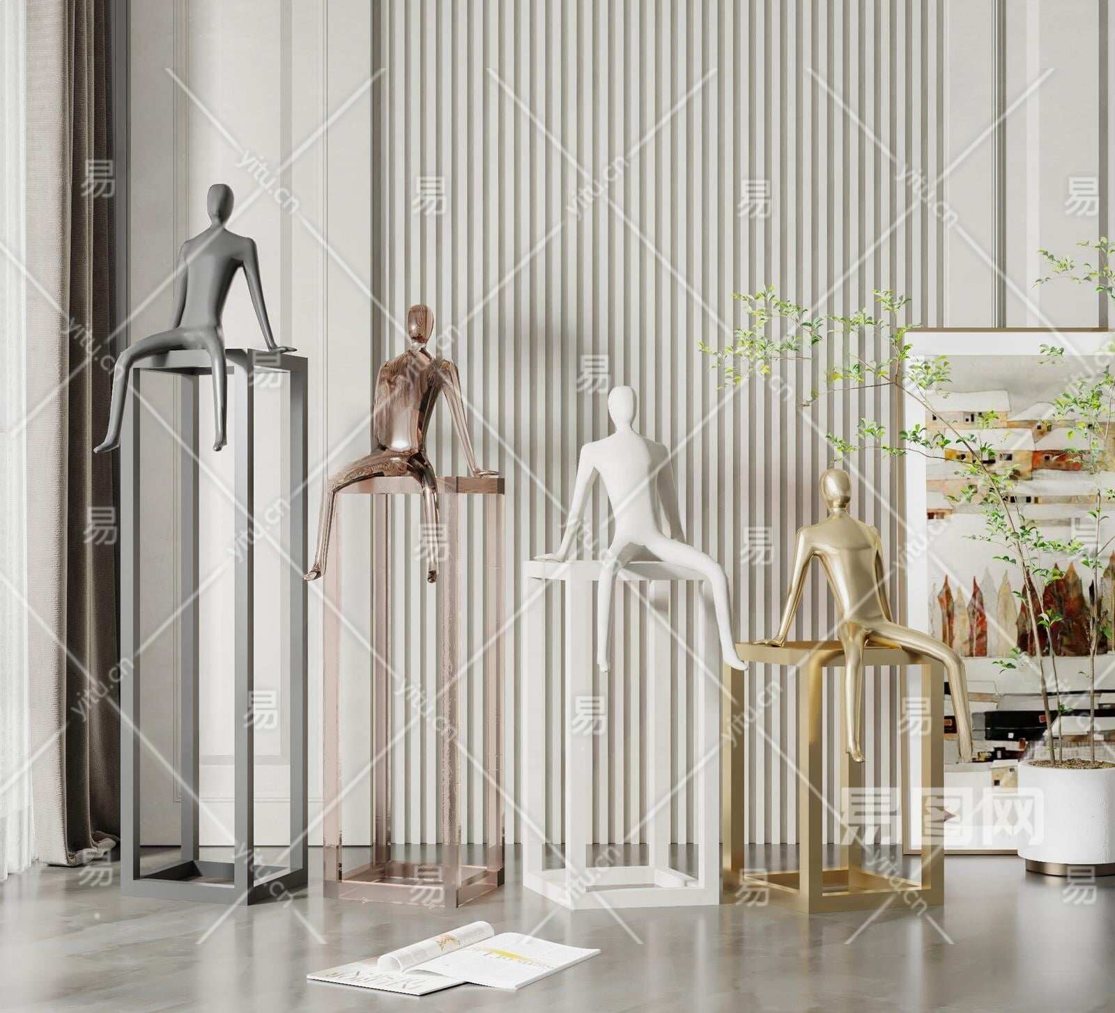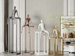 现代人物雕塑装置3D模型下载