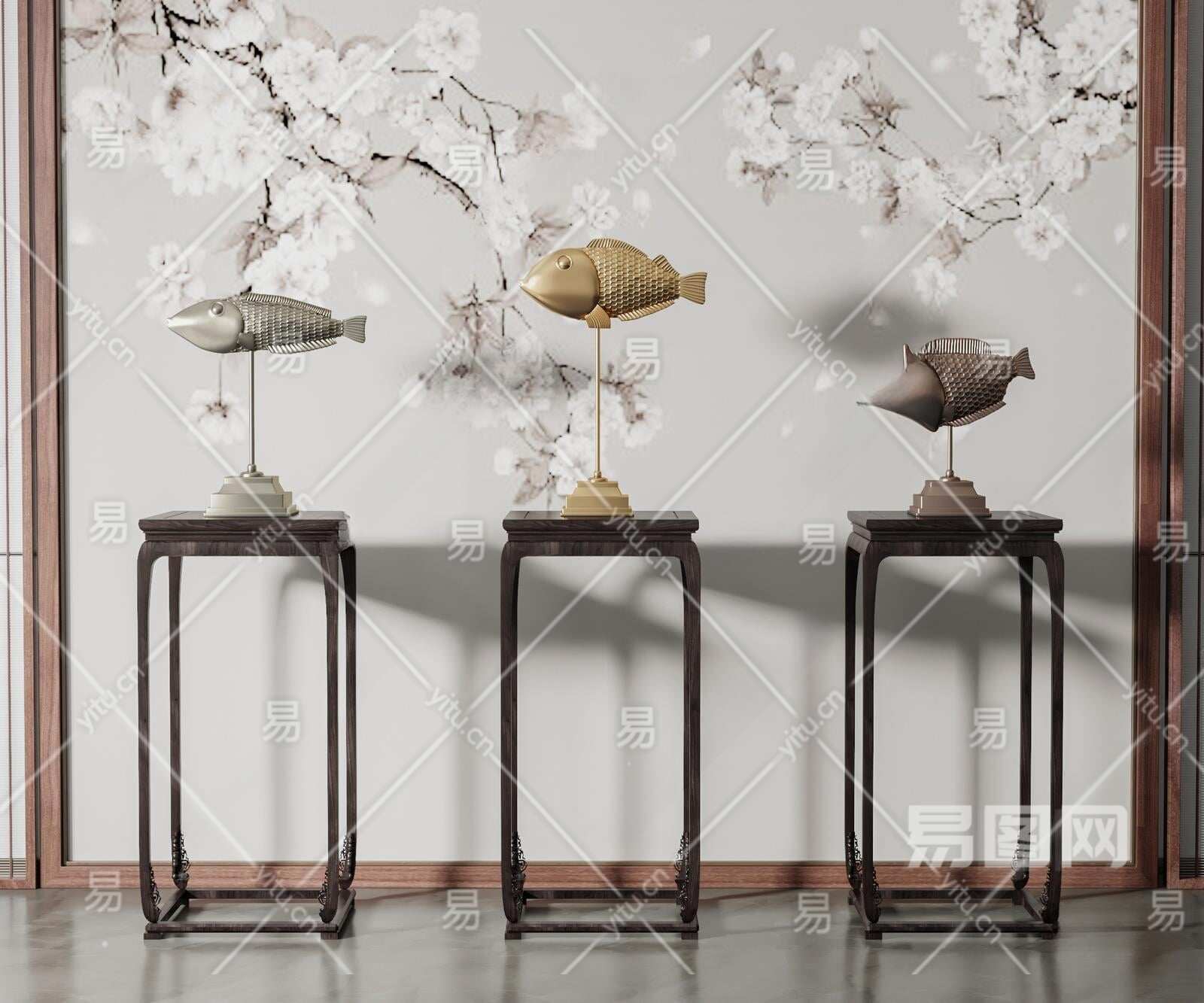 新中式鱼雕塑装置3D模型下载