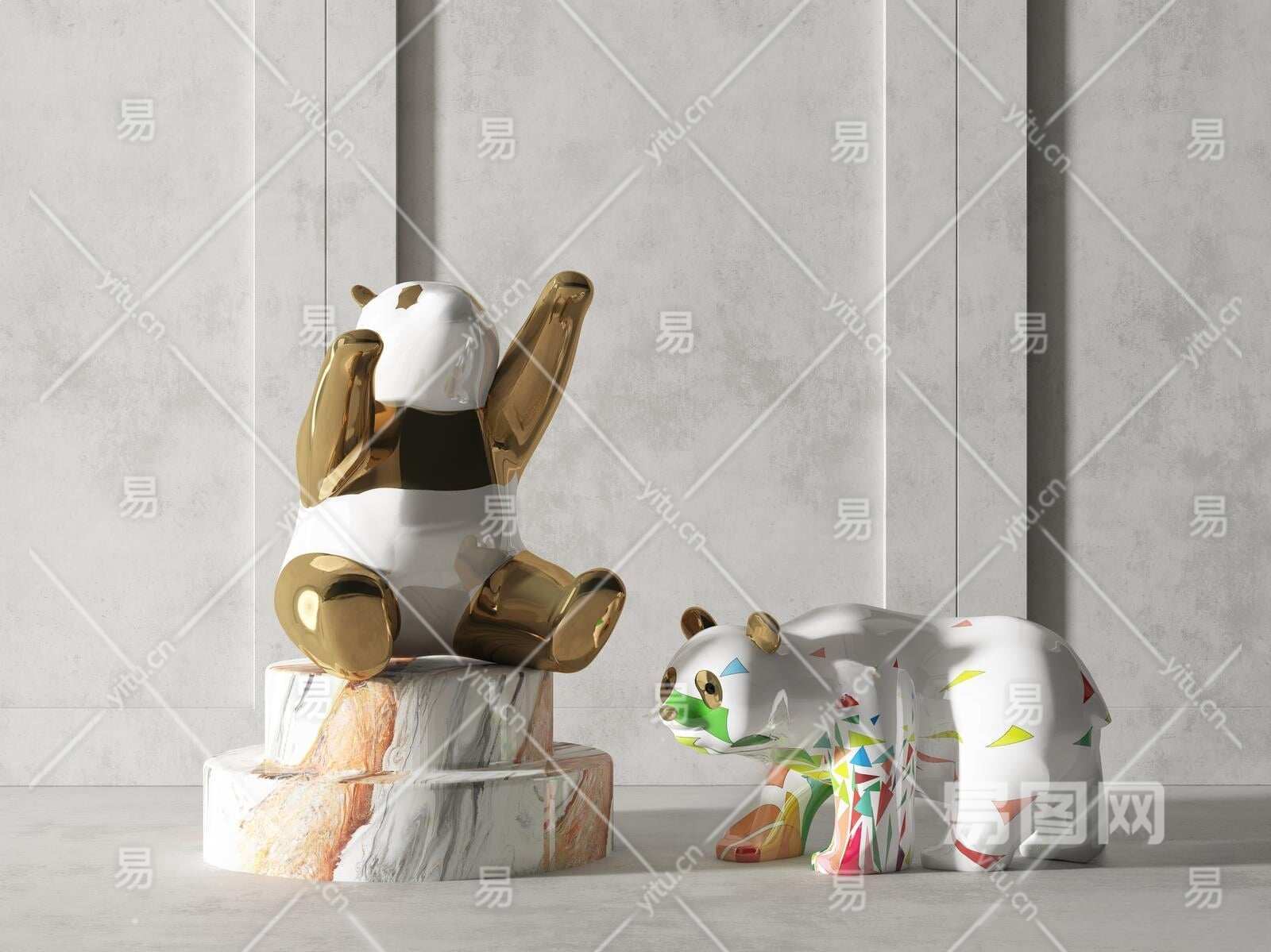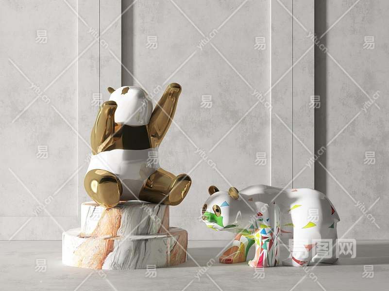 现代熊猫雕塑装置3D模型下载