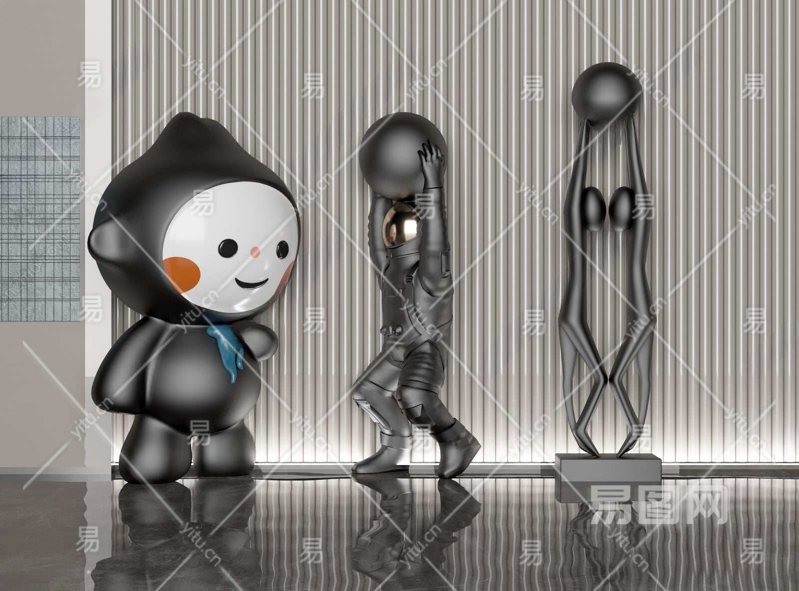 现代卡通雕塑装置3D模型下载