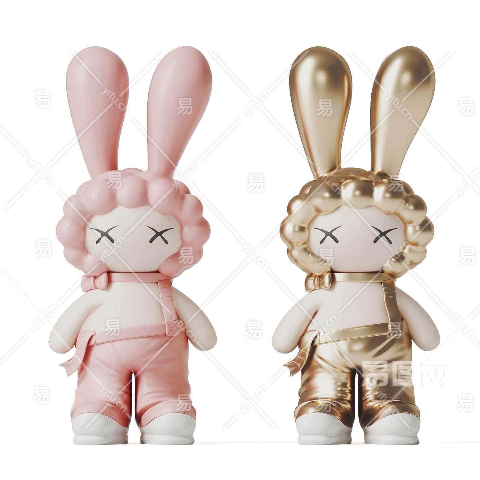 现代兔子小孩雕塑装饰摆件3D模型下载