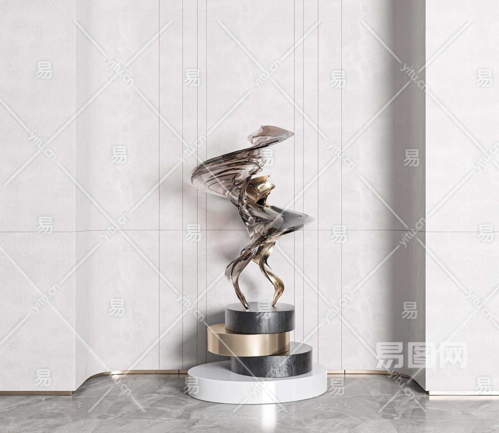 现代室内雕塑装置3D模型下载