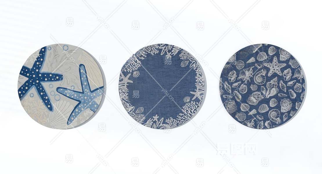 地中海蓝色海洋元素圆形地毯组合3D模型下载