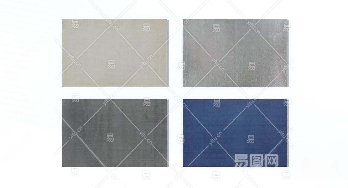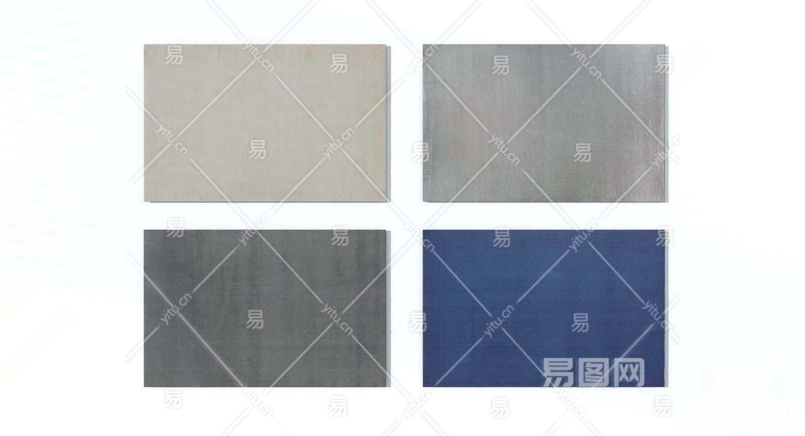 现代高级灰蓝色纯色地毯组合3D模型下载