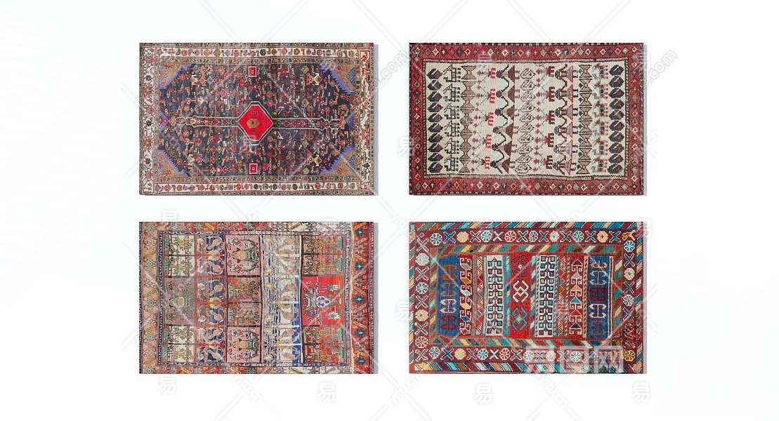 美式乡村红色暖色调花纹地毯组合3D模型下载