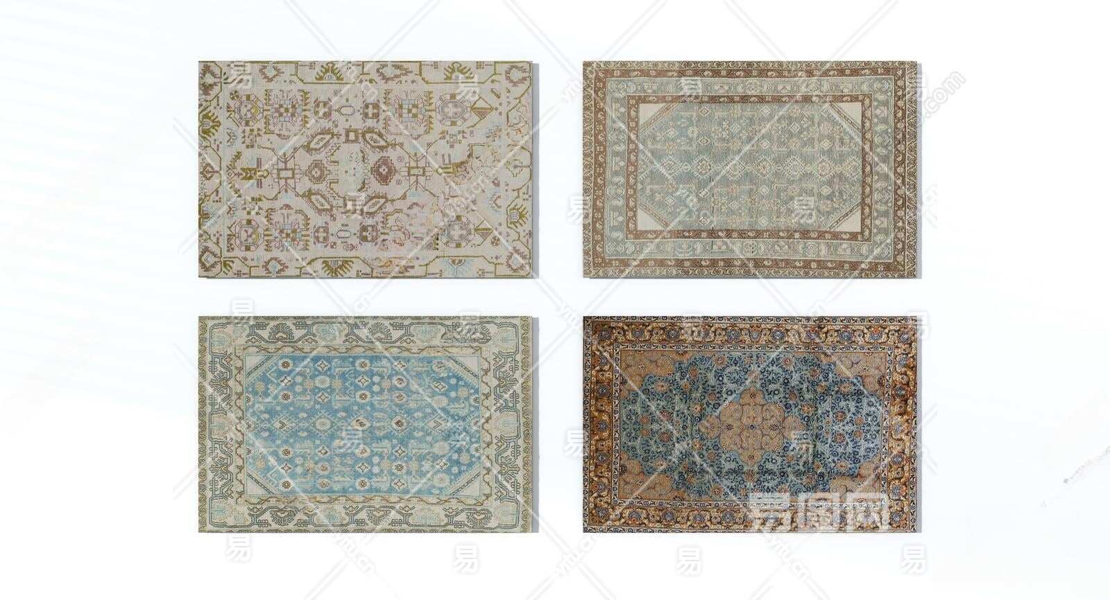 美式乡村灰蓝色调花纹地毯组合3D模型下载