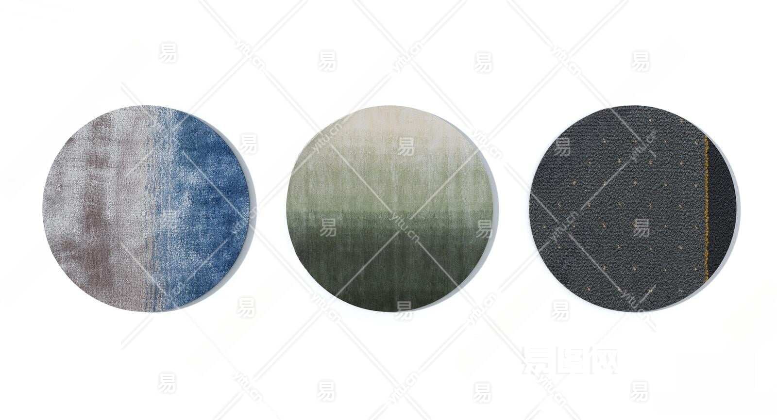 现代高级灰蓝绿色圆形地毯组合3D模型下载