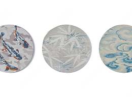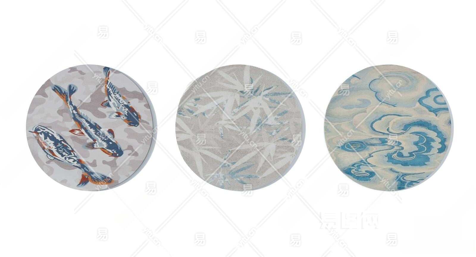 新中式蓝色吉祥图案圆形地毯组合3D模型下载
