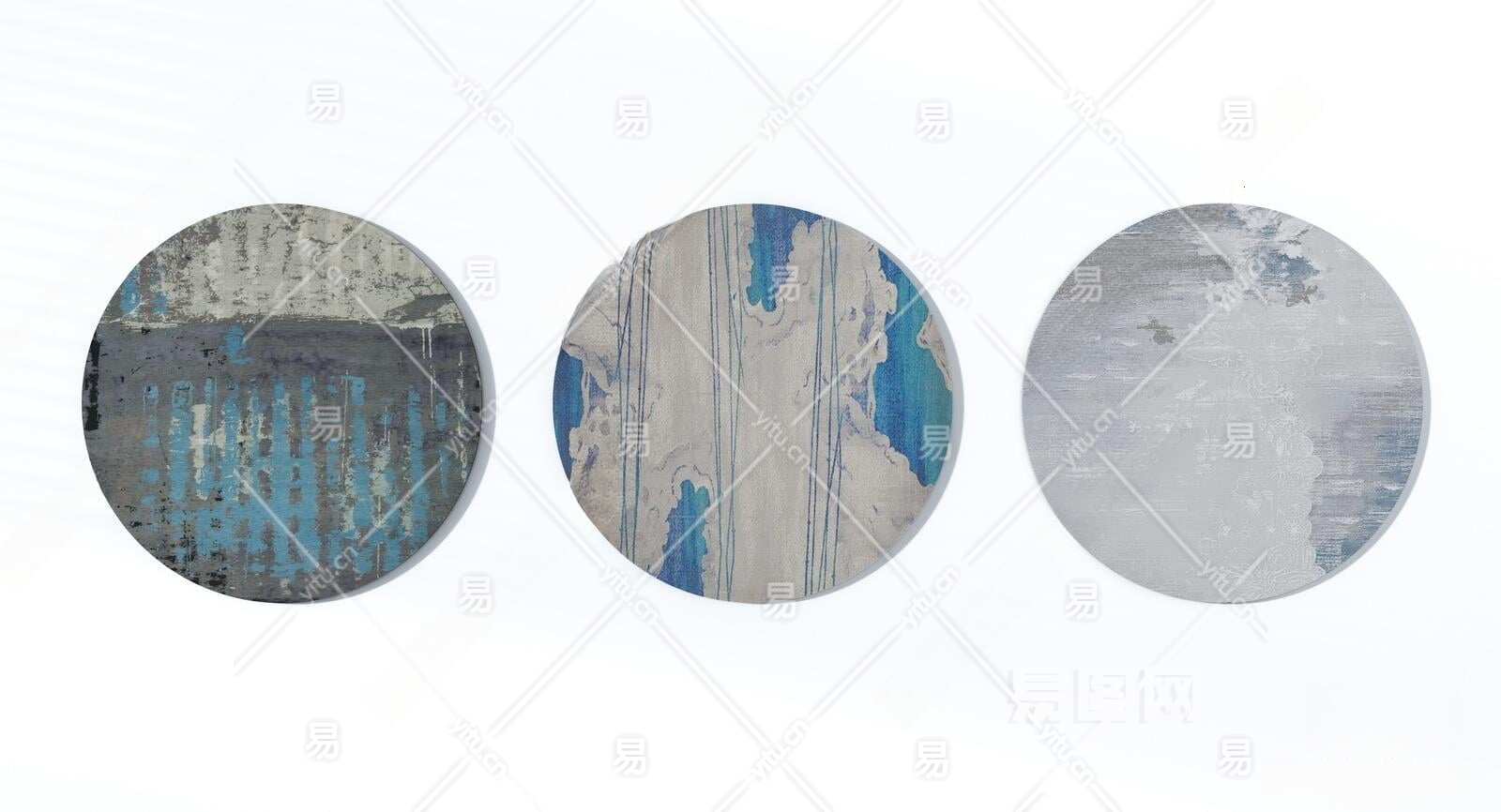 新中式高级蓝色抽象圆形地毯组合3D模型下载