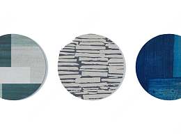 现代灰蓝色几何圆形地毯组合3D模型下载
