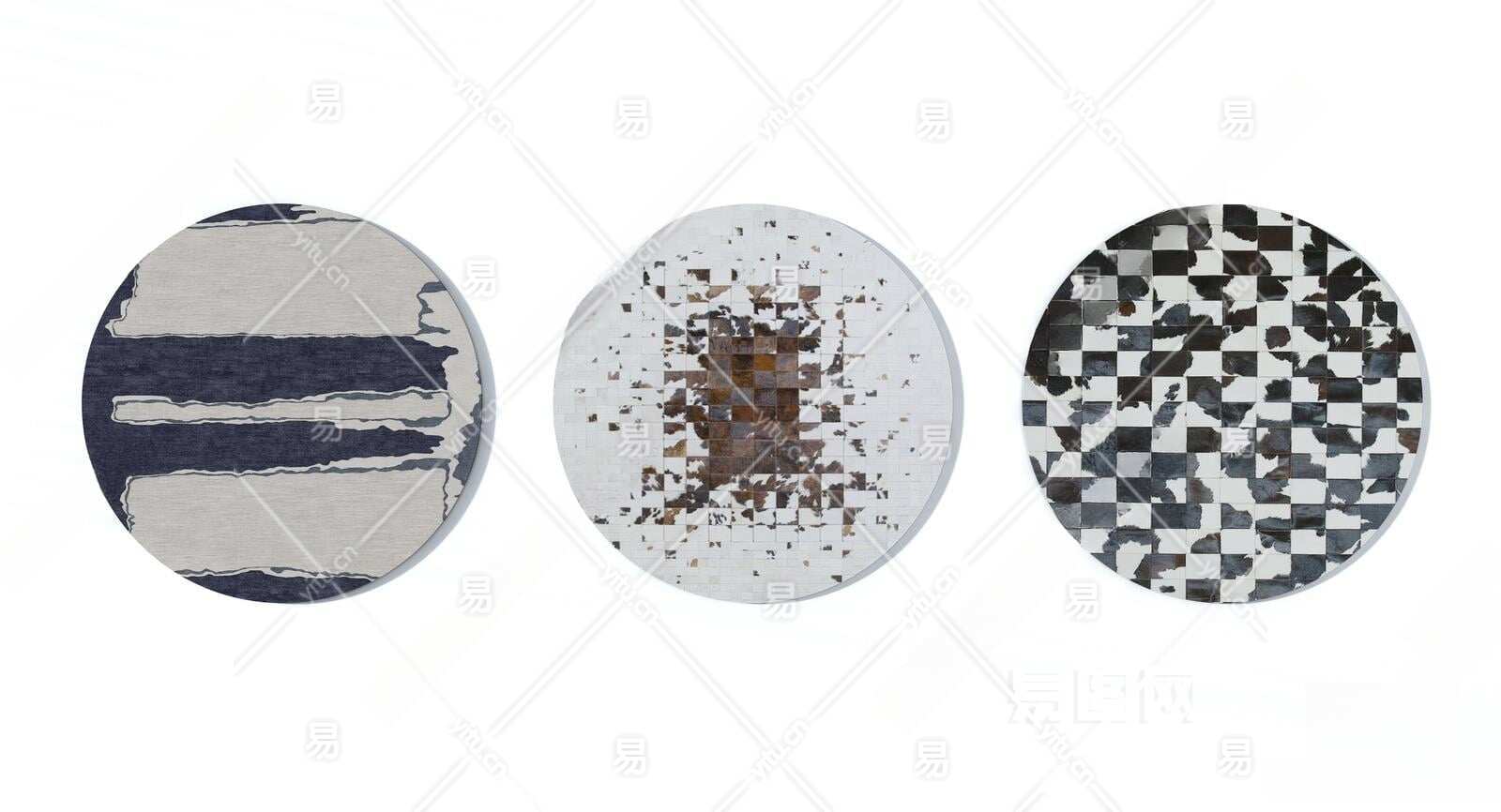 现代高级动物皮毛几何圆形地毯组合3D模型下载
