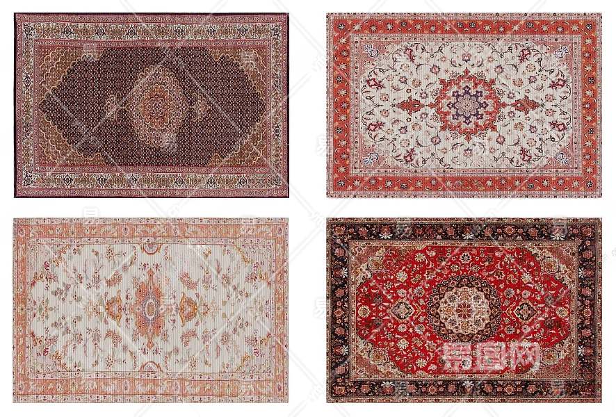 欧式古典深红色地毯组合3D模型下载