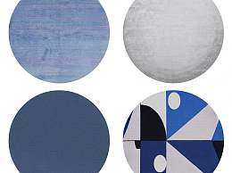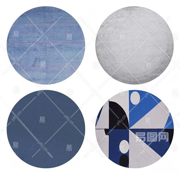 现代灰蓝白色抽象图案圆形地毯组合3D模型下载