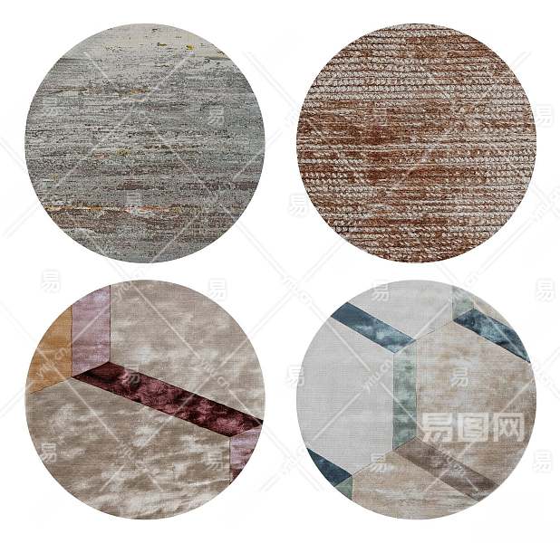 现代灰蓝咖色图案圆形地毯组合3D模型下载