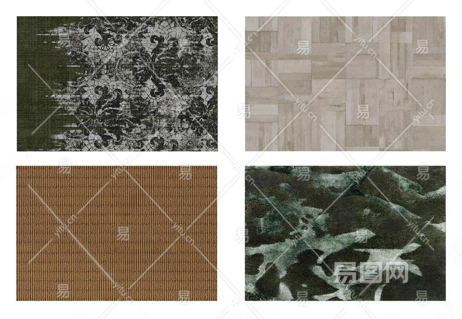 现代灰咖深绿色抽象图案地毯组合3D模型下载