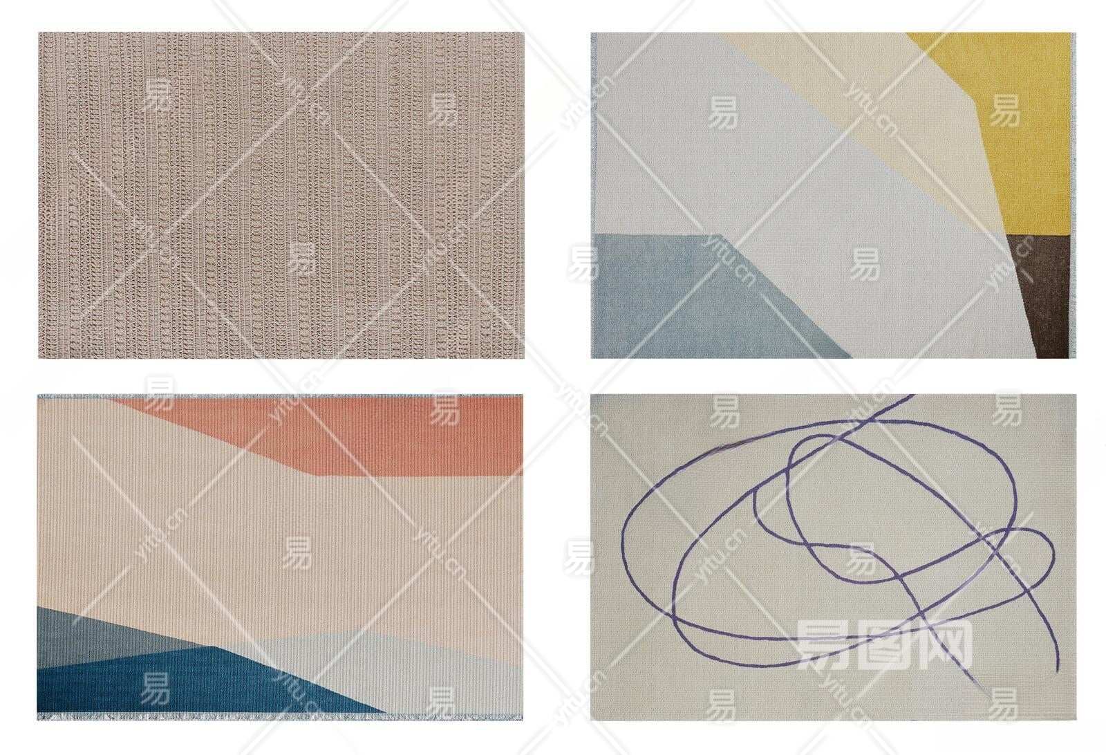 现代米灰粉黄色抽象图案地毯组合3D模型下载
