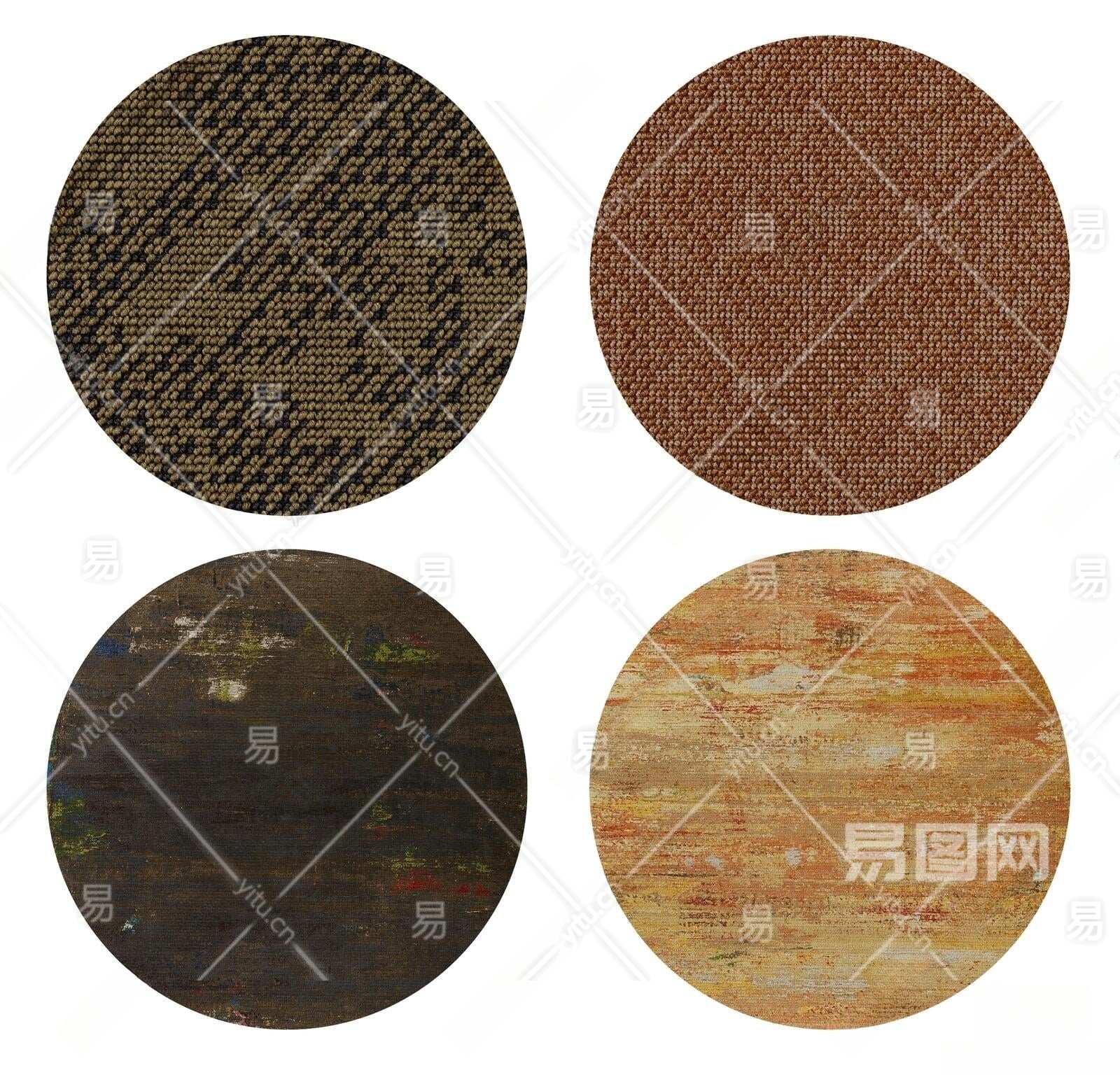 现代咖色抽象图案圆形地毯组合3D模型下载