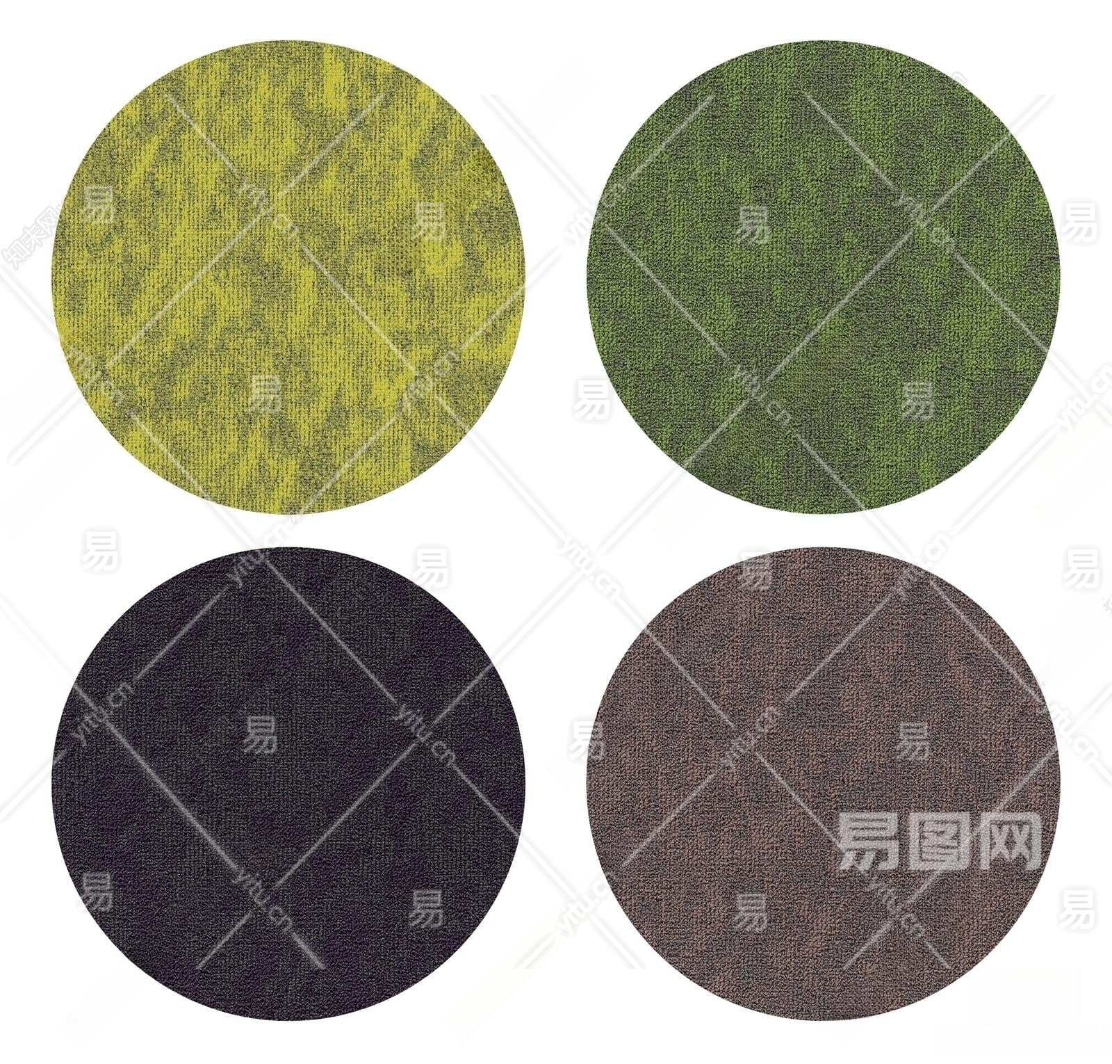 现代黄绿灰色抽象图案圆形地毯组合3D模型下载