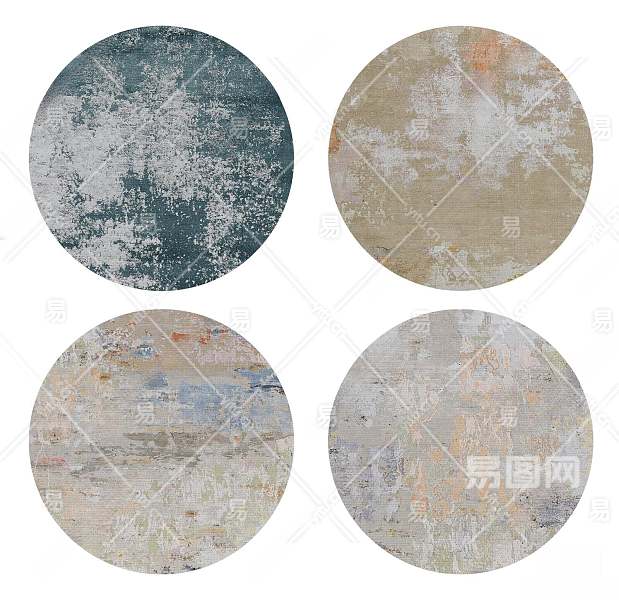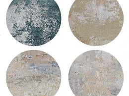 现代灰蓝米咖色抽象图案圆形地毯组合3D模型下载