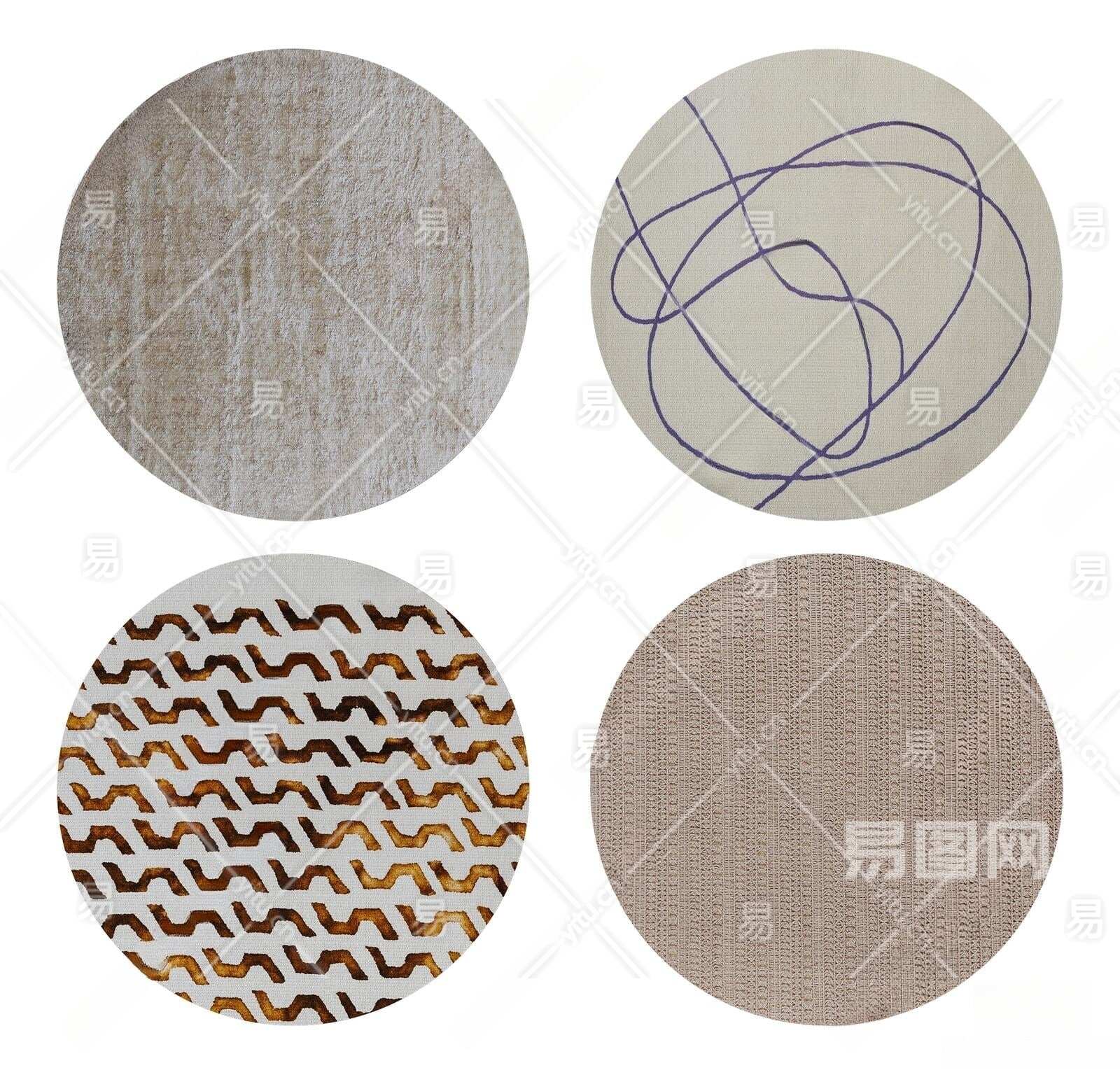 现代米咖白色抽象图案圆形地毯组合3D模型下载
