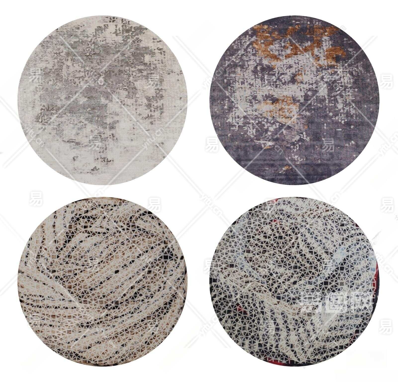 现代高级灰抽象图案圆形地毯组合3D模型下载