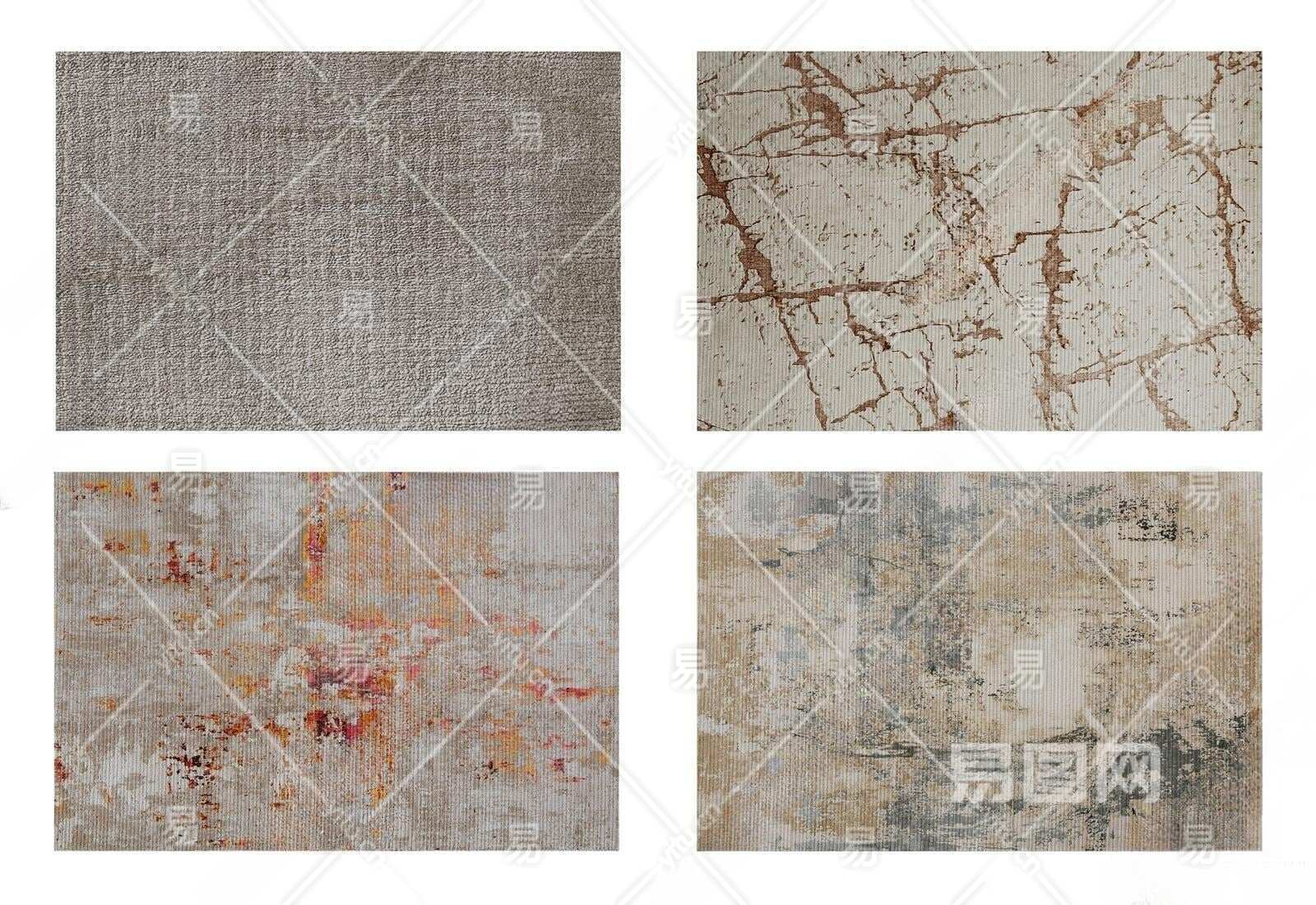 现代高级暖灰色抽象暗纹图案地毯组合3D模型下载