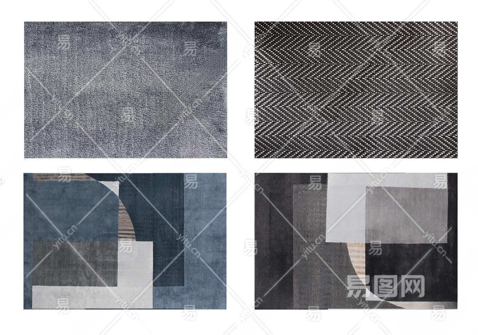现代高级灰蓝色暗纹图案地毯组合3D模型下载