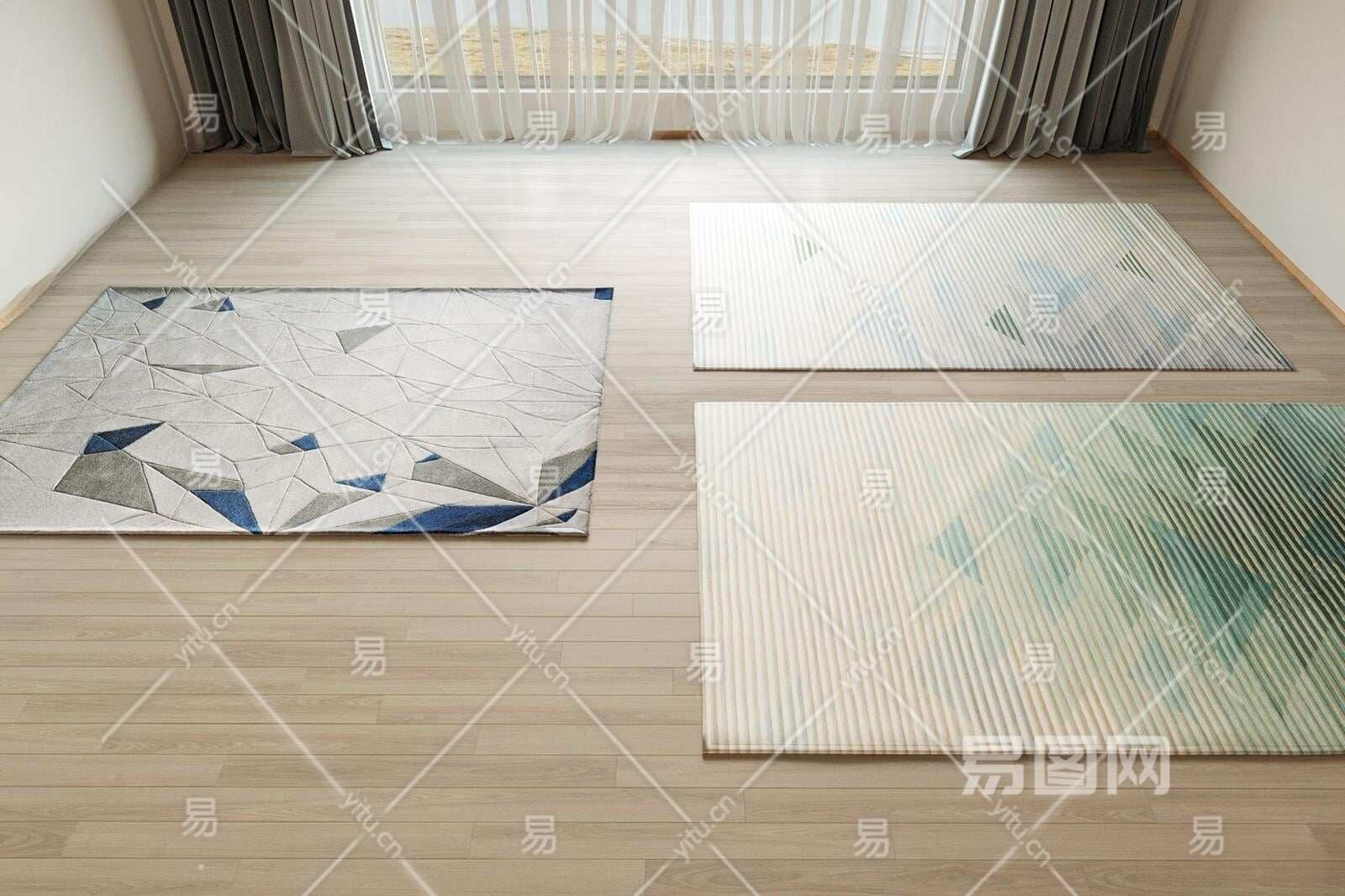 现代方形布艺地毯3D模型下载