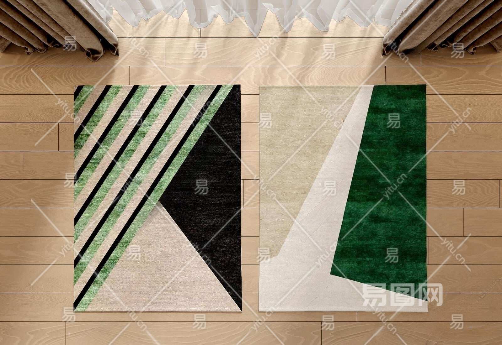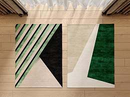 现代绿色几何布艺地毯3D模型下载