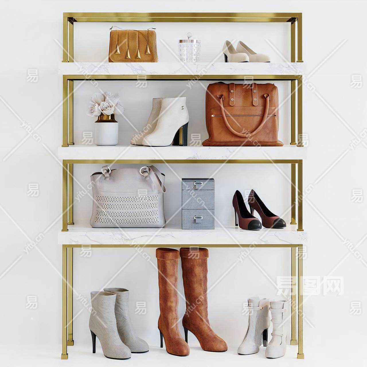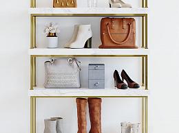 现代轻奢鞋子背包组合陈设架