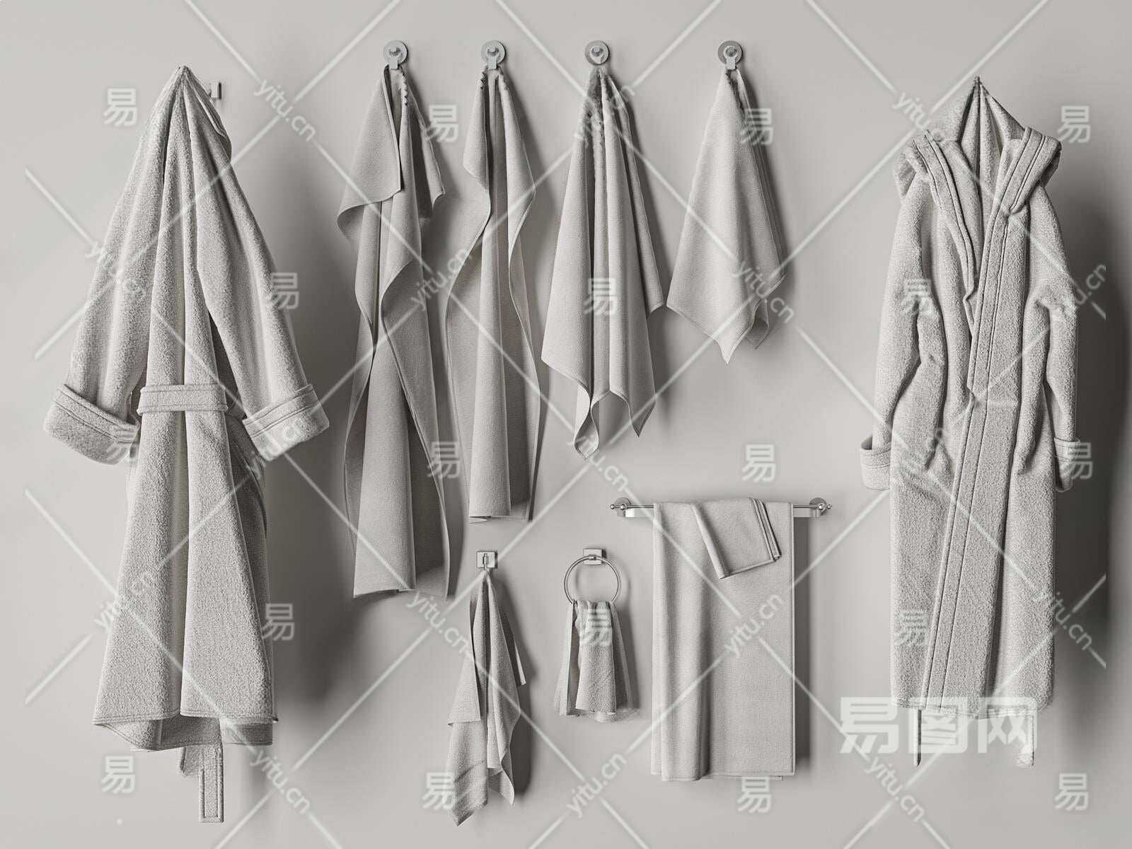现代浴袍毛巾组合3D模型下载