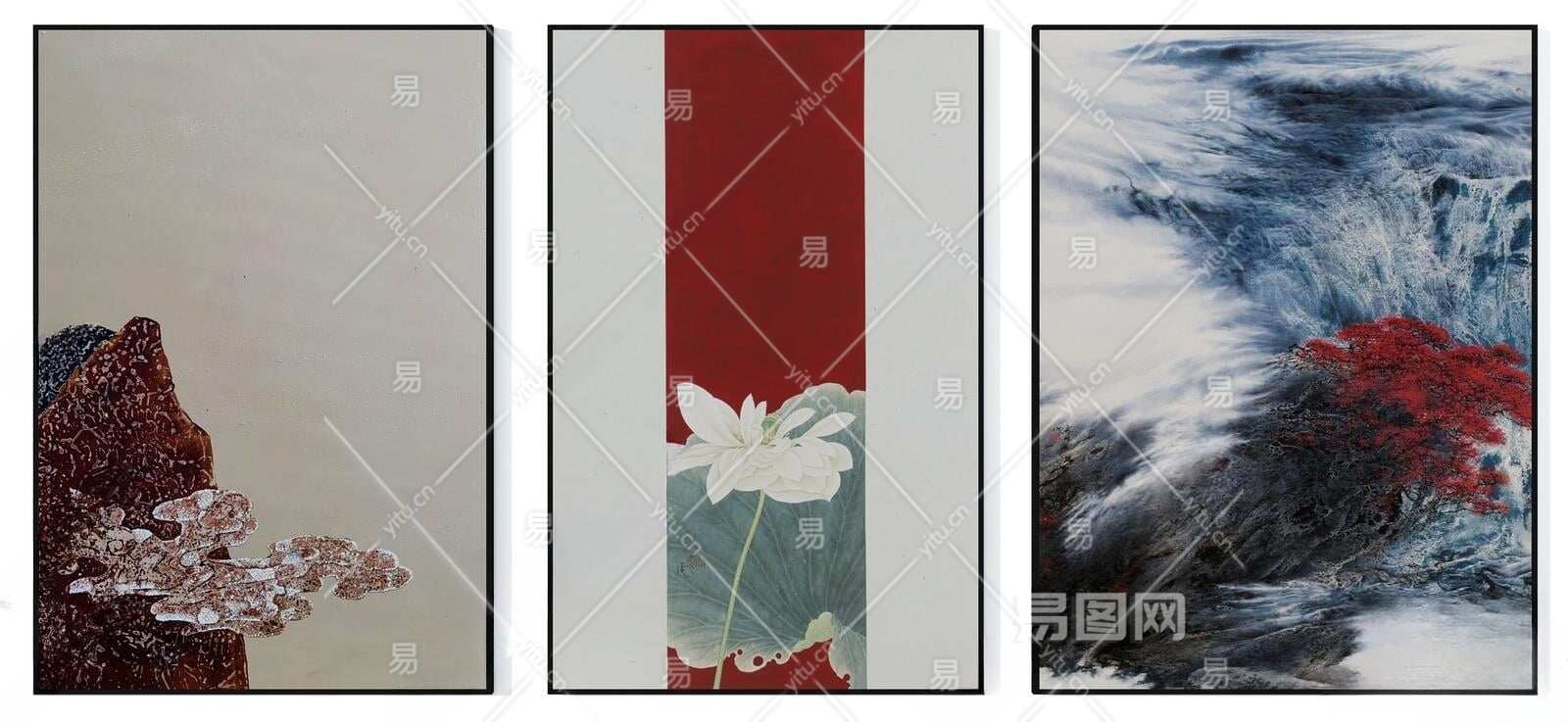 新中式红蓝色挂画组合3D模型下载