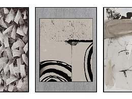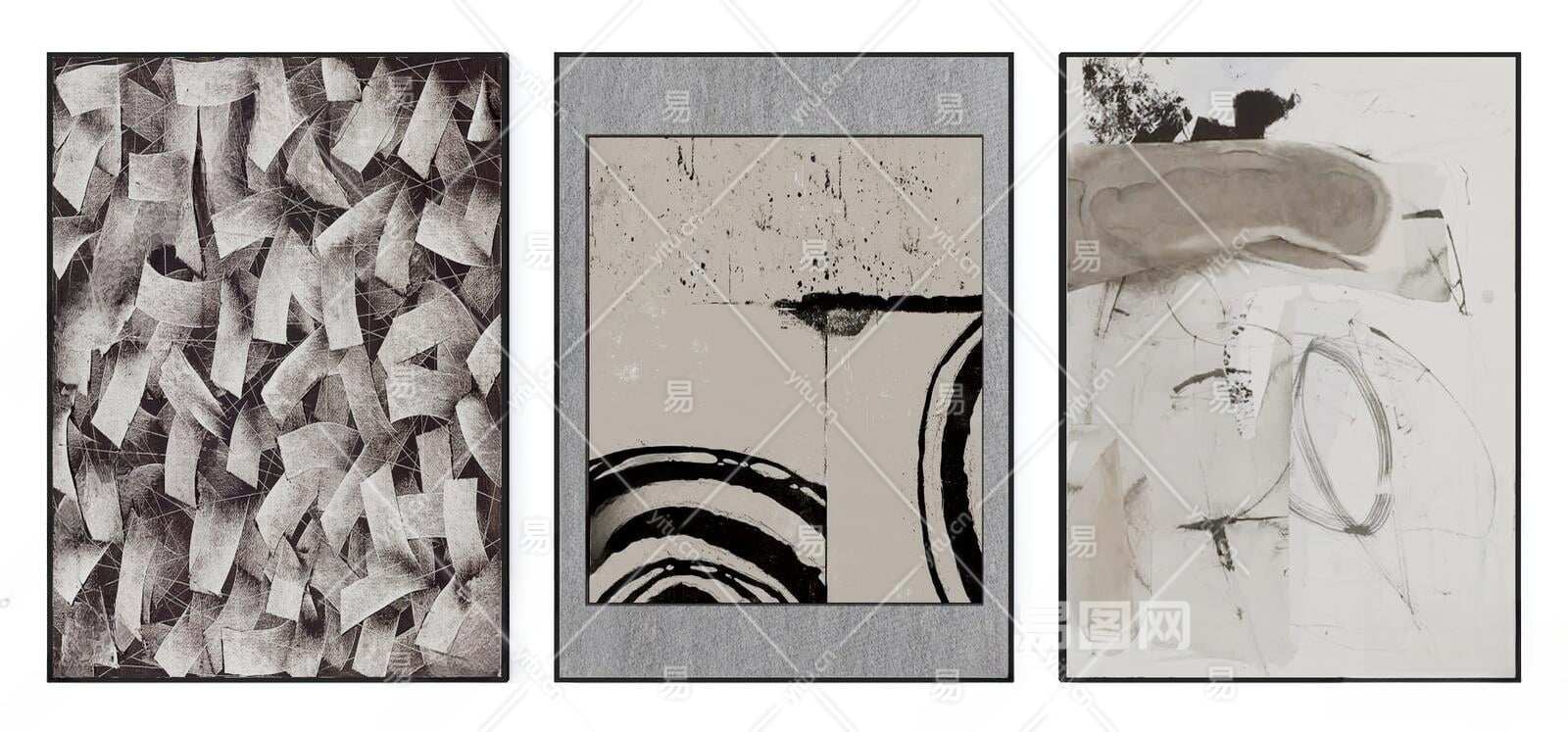 现代高级暖灰色抽象图案挂画组合3D模型下载