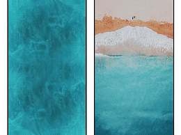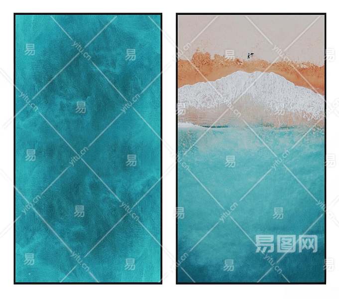 现代蓝色海洋沙滩抽象风景图案挂画组合3D模型下载
