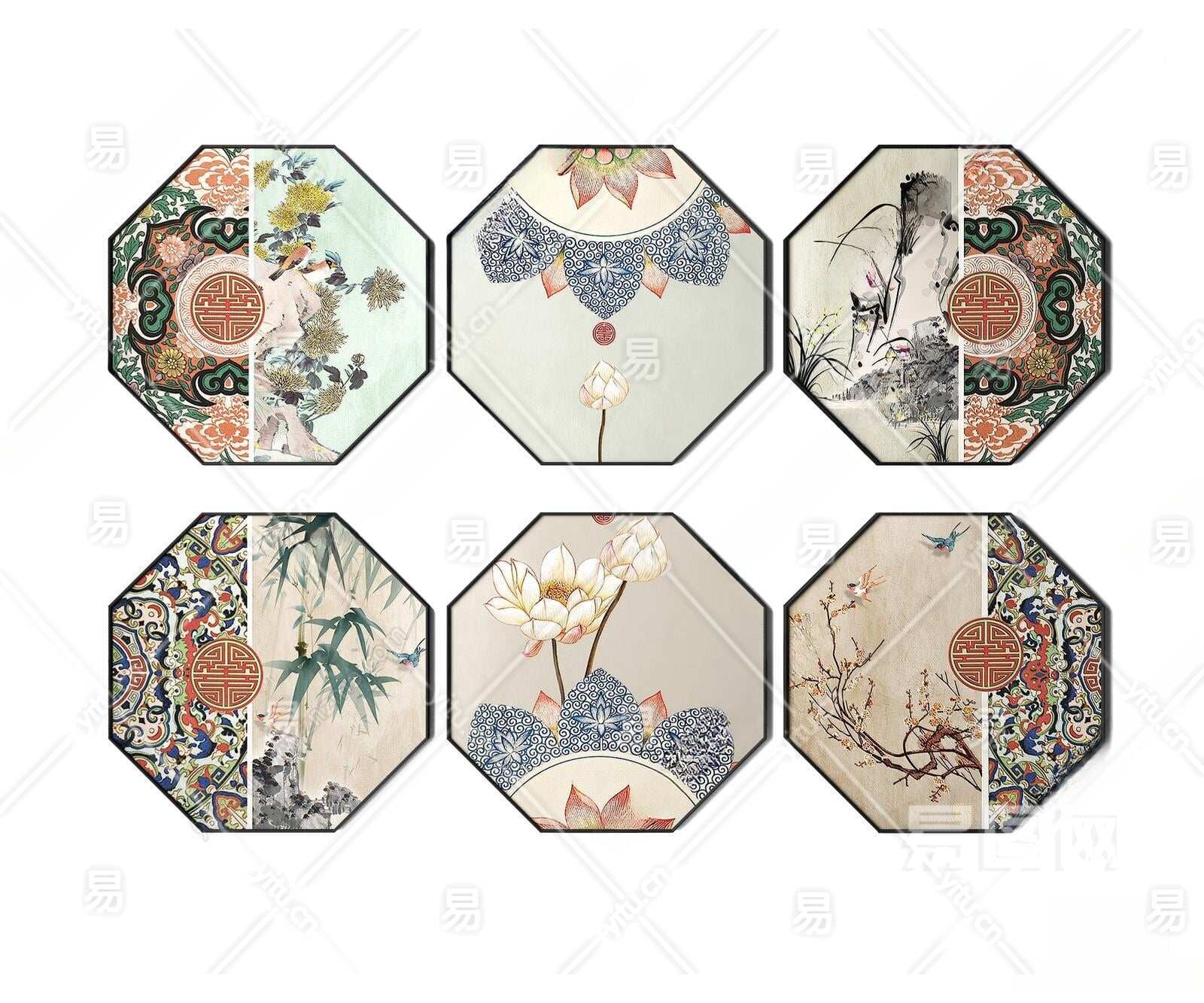 新中式八边形装饰画3D模型下载