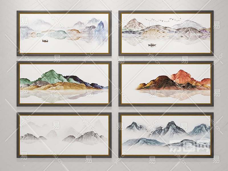 新中式水墨装饰画3D模型下载