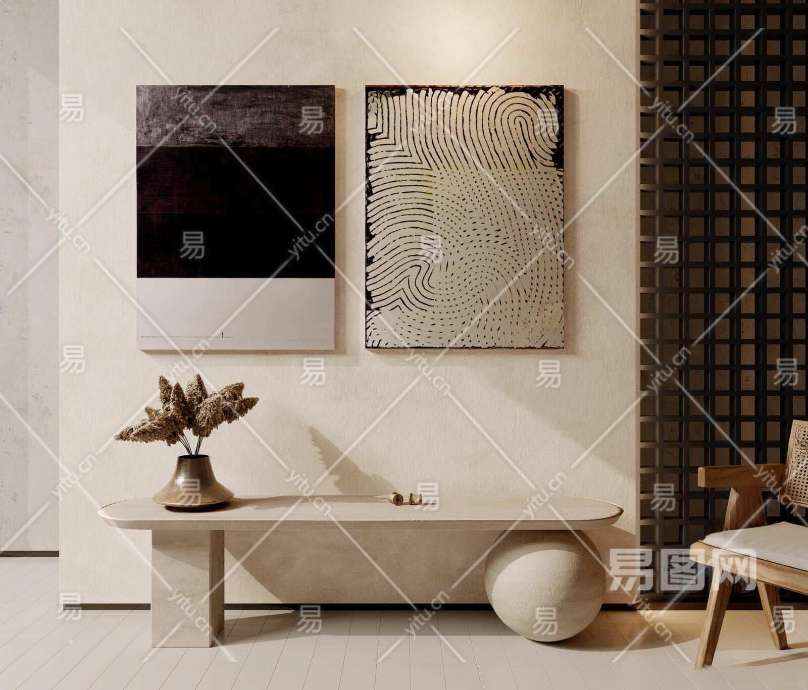 侘寂装饰画3D模型下载