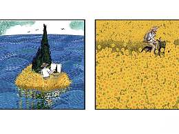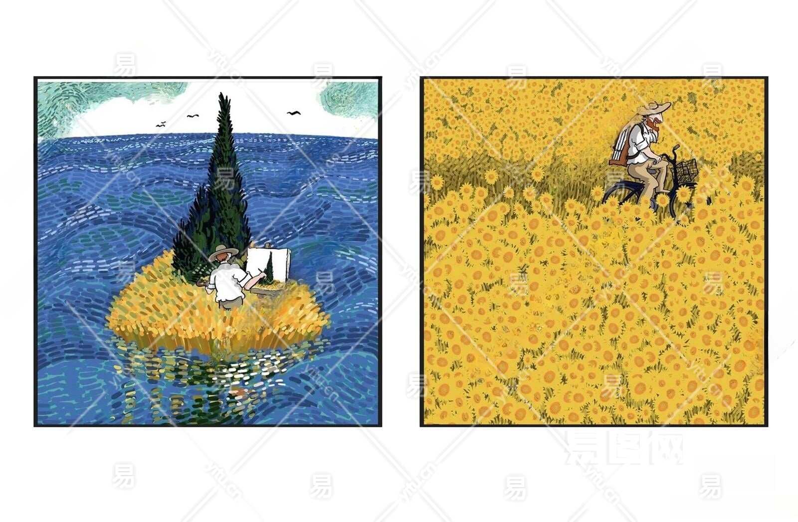 现代明亮黄蓝色卡通人物风景挂画组合3D模型下载
