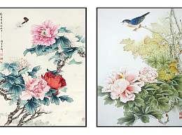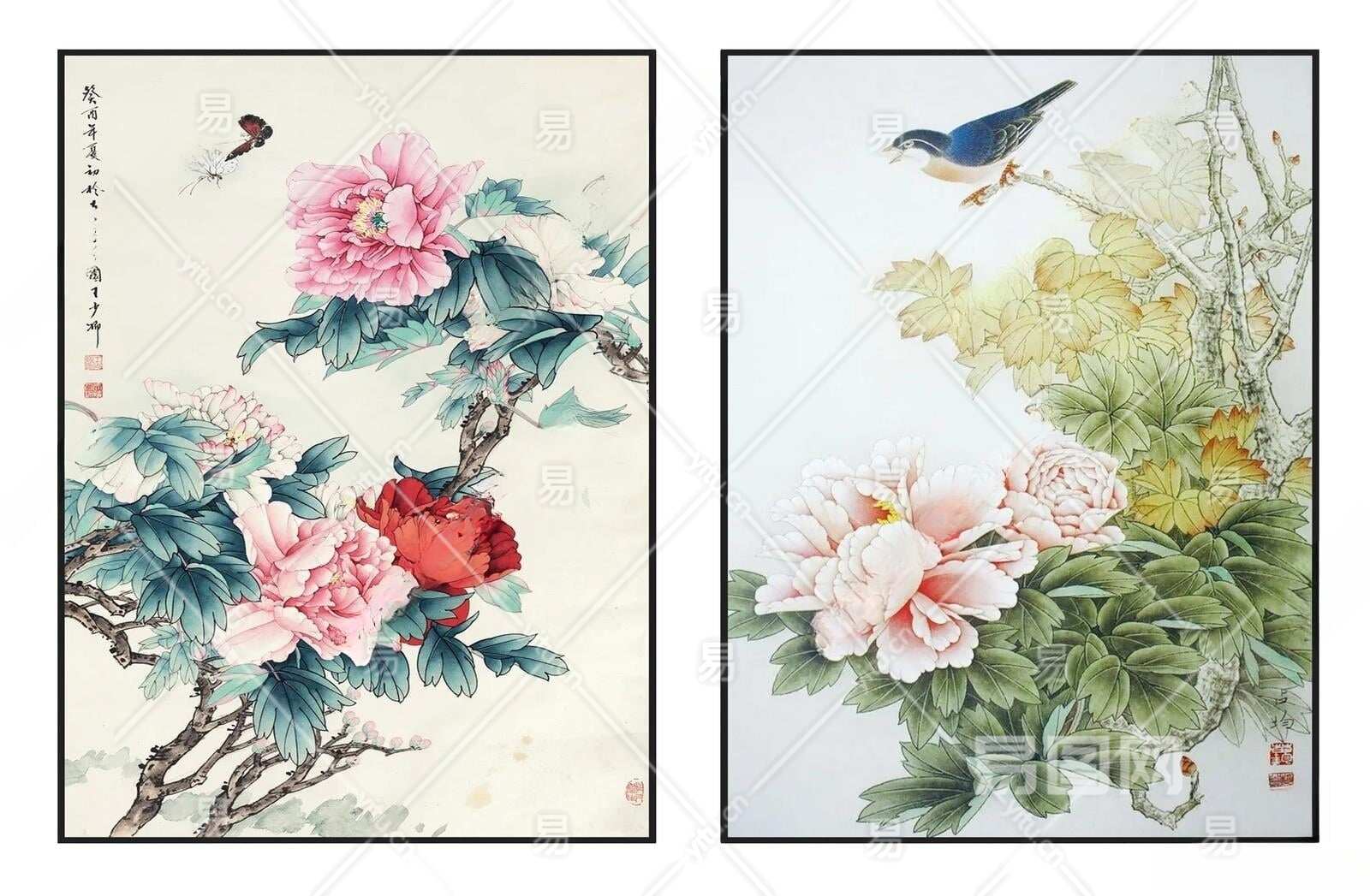 中式雅致牡丹花鸟图案挂画组合3D模型下载