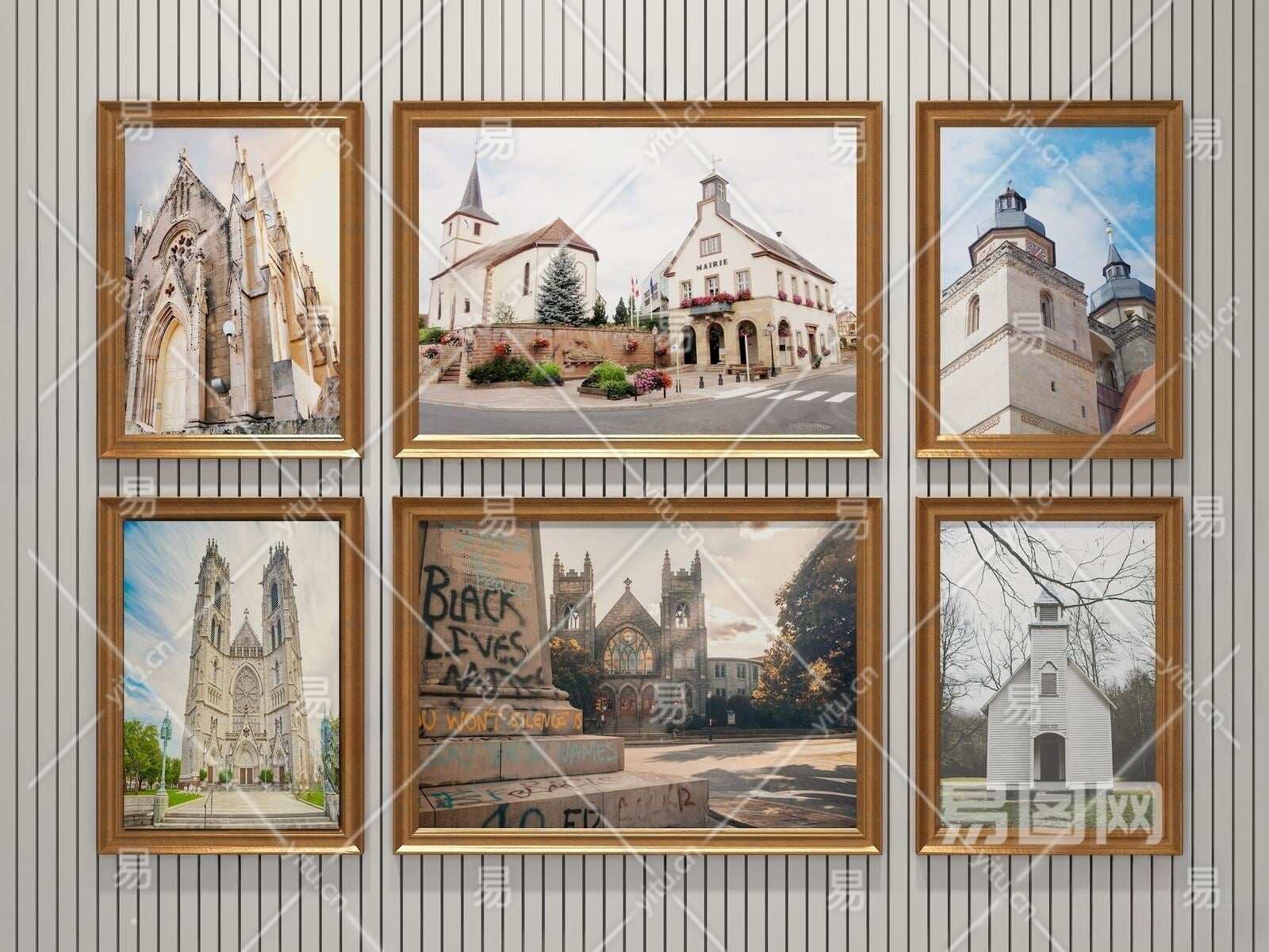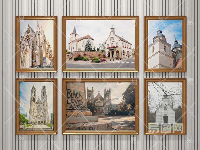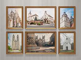 美式建筑装饰画3D模型下载