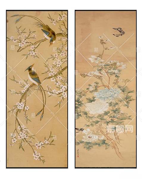 中式暖咖色雅致花鸟图案挂画组合3D模型下载