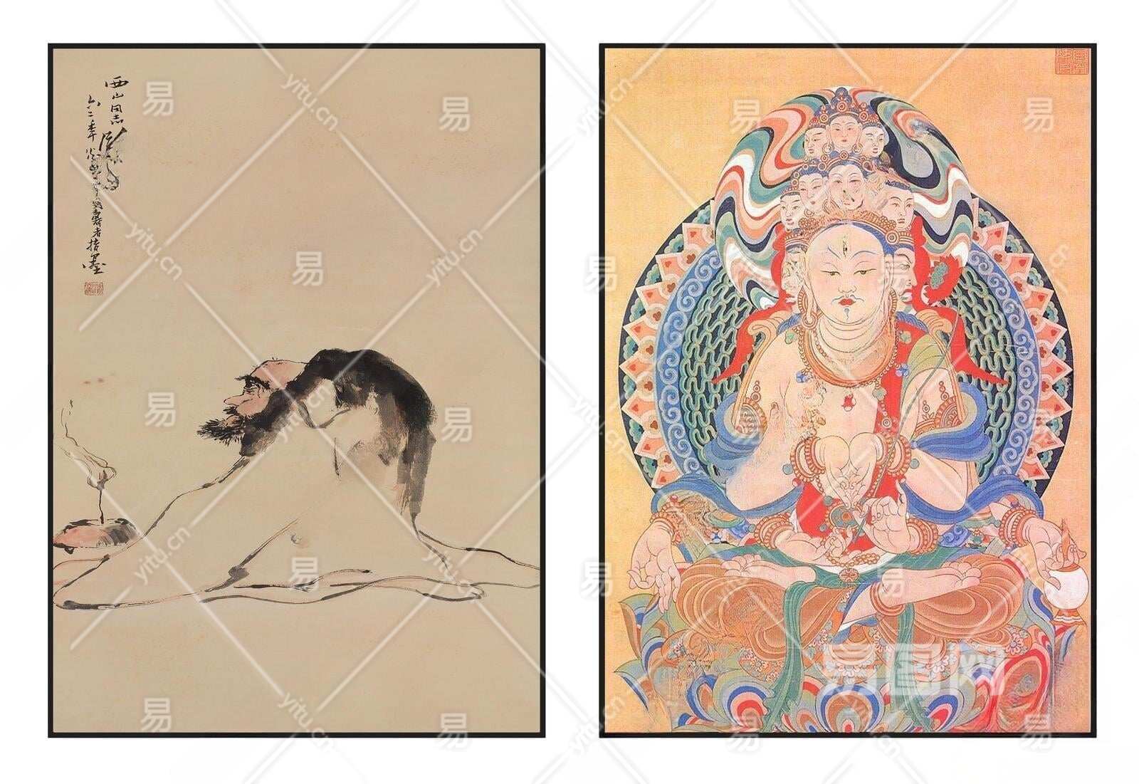 新中式禅意雅致人物佛像图案挂画组合3D模型下载